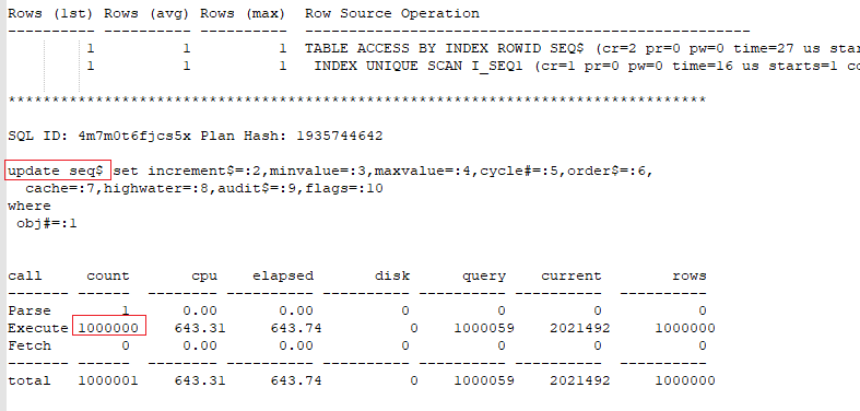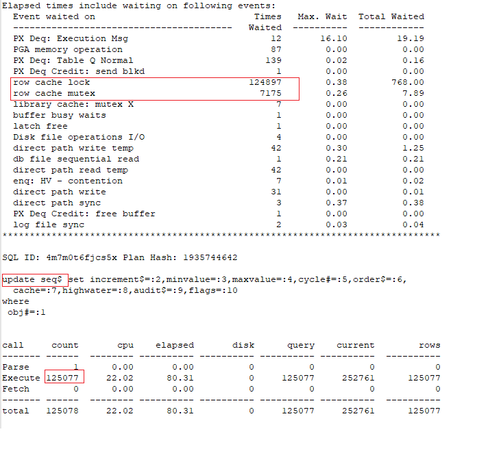 But also in serial processing (Even if the session may only request the lock once for the whole work), the act to update the seq$ table for each used value of the sequence is very expensive. Therefore you should cache the sequence.